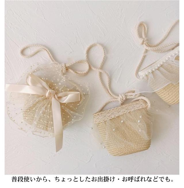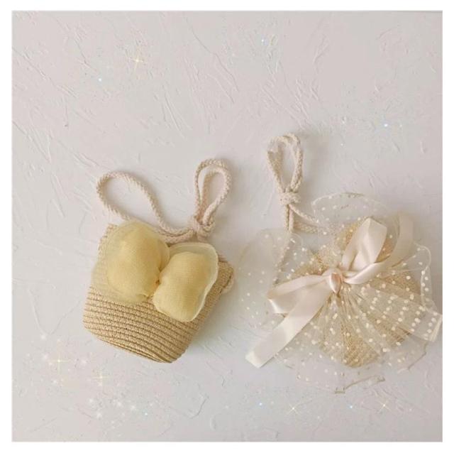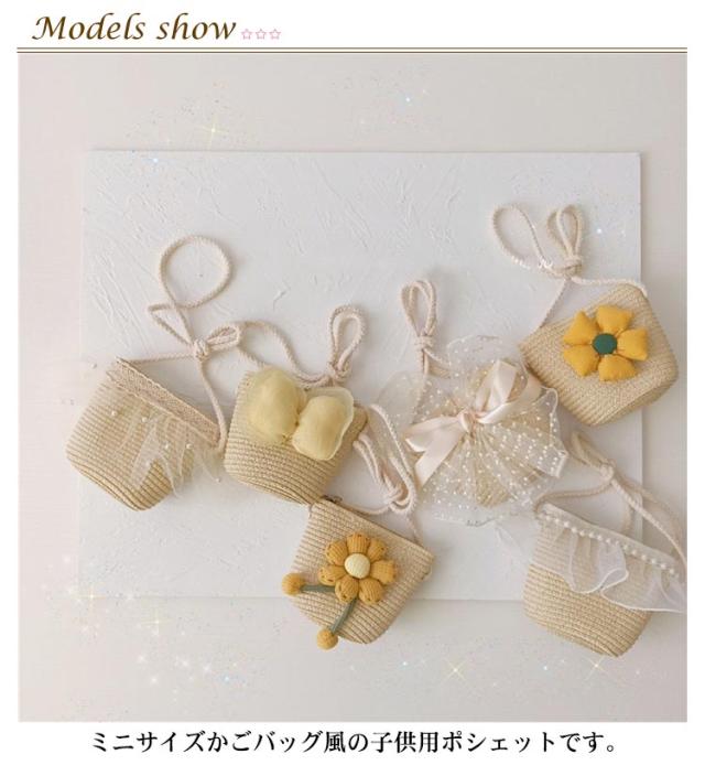 | シンプルなデザインにリボンが上品でガーリー麦わらバッグ ミニサイズかごバッグ風の子供用ポシェットです。 普段使いから、ちょっとしたお出掛け・お呼ばれなどでも | |