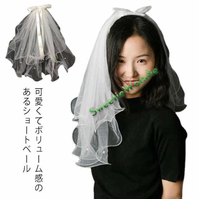 【送料無料】結婚式 ヴェール ベール ショートタイプ かわいい リボン付き フェイクパール ウエディング ウエディングベール 髪飾り ショートベール フェイスアップ ハロウィン 仮装 コスプレ イベント 選べるつけ方 パーティー
