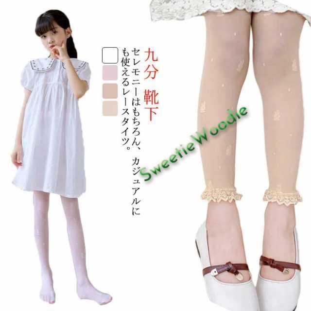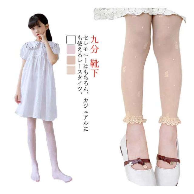 送料無料 子供用 タイツ フォーマル 発表会 卒業式 七五三 白 キッズ コンクール レースタイツ 九分 入学式 くつ下 卒園式 入園式 靴下 女の子 ホワイト 結婚式 幼稚園 網タイツ ネットタイツ 柄タイツ