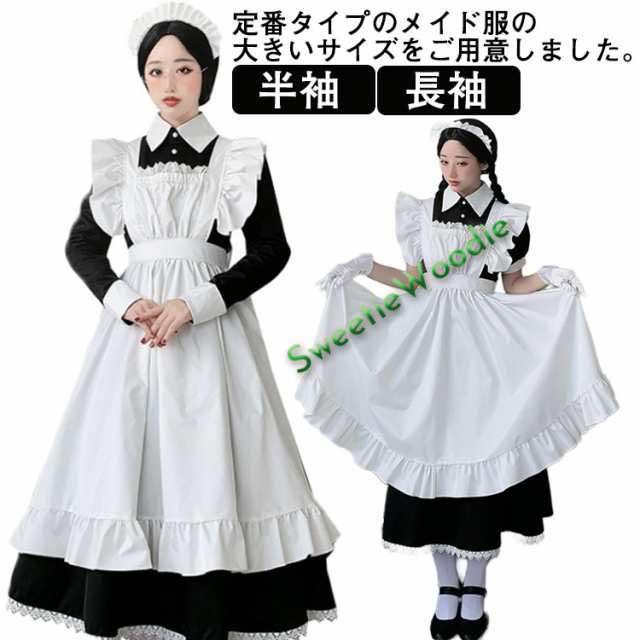 コスチュームロングワンピース メイド服 ロング コスプレ衣装 半袖 長袖 クラシカル ロイヤルメイド レディース 大人用 イギリス風 フリル クラシカル 制服 喫茶店 変装 エプロン ゴスロリ ロング ワンピース 洋風 カチューシャ コスチューム ハロウィン レディース