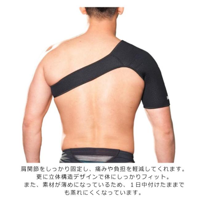 | 慣れないリモートワークでの慢性的肩こり、痛くて腕が回せない四十肩、五十肩、急な脱臼、捻挫などの怪我など、肩の痛み、悩みを抱えるあなたに! このサポーターで痛みの軽減を実感してください。 サポーターの強みはこの5点! しっかり固定 通気性 伸縮性 吸水性 耐久性 肩関節をしっかり固定し、痛みや負担を軽減してくれます。更に立体構造デザインで体にしっかりフィット。 また、素材が薄めになっているため、1日中付けたままでも蒸れにくくなっています。 高い伸縮性があり日常の動きをサポートします。 どんな体型の方にもしっかりフィットしてくれます。 ナイロン素材で水濡れや汗で湿ってしまっても、べたつきを軽減してくれます。 薄手でもしっかりとした生地のため耐久性が高く、長くご利用いただけます。 | |