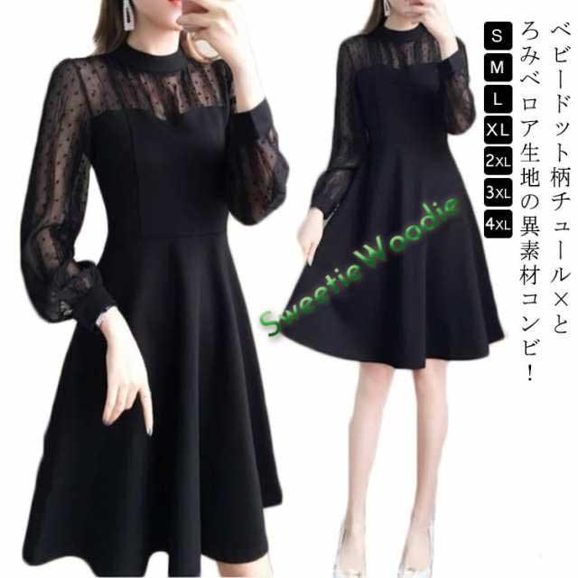 ミニドレス ドレス レース 透け パーティードレス ドレスワンピース 長袖 フォーマル レディース ショート Aライン ひざ丈 膝丈 結婚式 ベビードット柄 大人 パーティー ワンピース