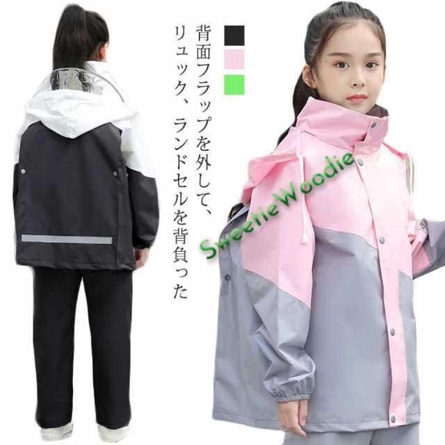 送料無料 レインコート キッズ ランドセル対応 自転車 通学 リュック レインコート 上下セット レインウェア 上下 雨具 カッパ セパレート アウトドア 女の子 男の子 レイン コート リュック対応 反射材 おしゃれ 小学生 袋付 110 120 130 140 150 160