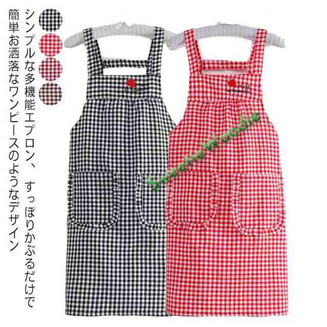エプロン H型 おしゃれ シンプル チェック柄 母の日 ポケット付き ワンピース 北欧 ゆったり ロング丈 キッチン 可愛い 黒 ナチュラル 介護 レディース 料理 飲食店 カフェ/倉庫 家事 保育士 大きいサイズ 送料無料