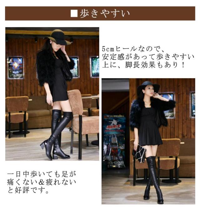 | 厚底で歩きやすいニーハイブーツ♪ヒール高さ5cmで疲れない! ■歩きやすい 5cmヒールなので、安定感があって歩きやすい上に、脚長効果もあり! 一日中歩いても足が痛くない&疲れないと好評です。 ■筒丈が長いから暖かい 長めの筒丈はひざ下全体をカバーしてくれるので足元も温かい。 冬のレジャーやおでかけに、ロング丈のブーツは手放せない! ■プチプラでハイデザイン スパッツでブーツインスタイルにも、ミニスカートやショートパンツにも♪ どんなコーデにも合わせやすい、きれい系優秀デザインなのに、手の届きやすいお値段のロングブーツです。 ■お手入れ楽ちん 合皮だから多少の雨や水濡れなら気になりません。 少しの汚れならサッと拭けばキレイになって、お手入れらくちん!(レインブーツのように完全防水ではありません) | |