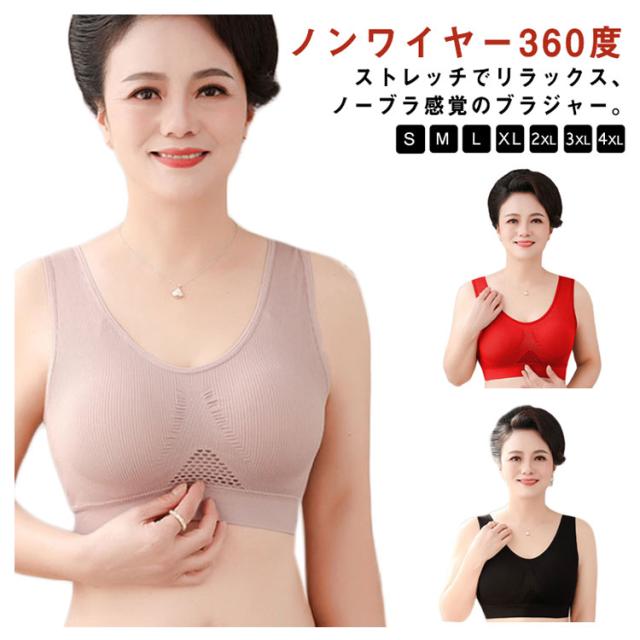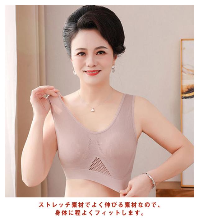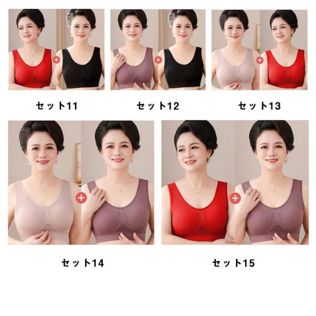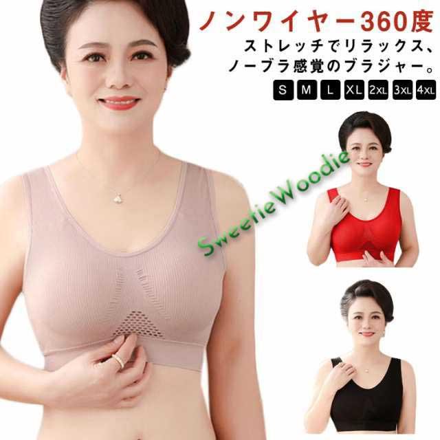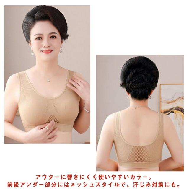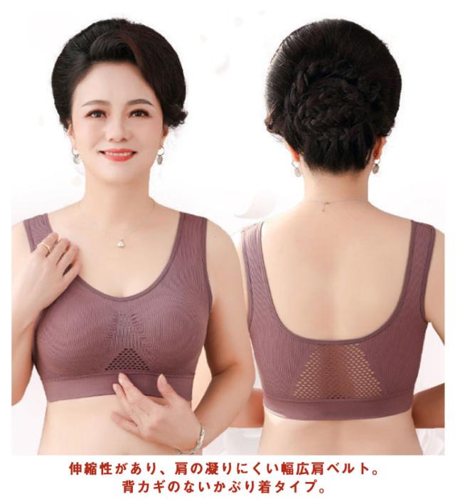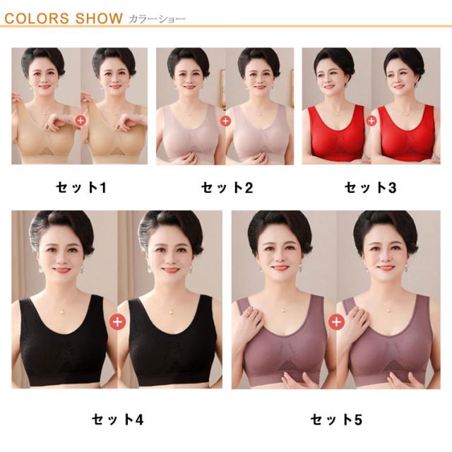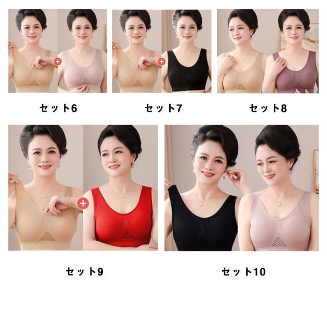 シニア ブラジャー 2枚セット ノンワイヤー ブラ 360度ストレッチ ナイトブラ カップ付き 肩紐 幅広 ブラパッド入り ハーフトップ おうちブラ 育乳 ノンワイヤーブラジャー 下着 敬老の日 母の日 祖母 プレゼント【送料無料】