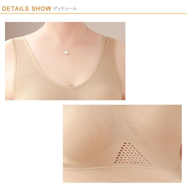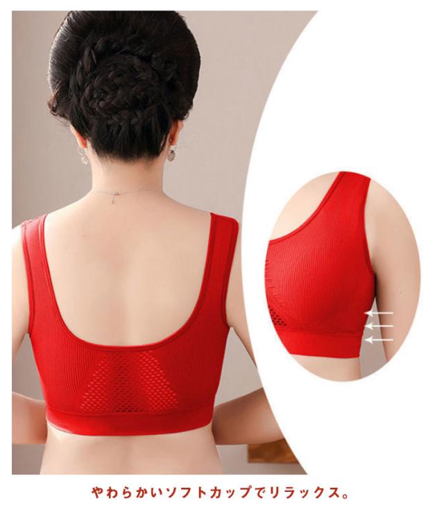 | ノンワイヤー360度ストレッチでリラックス、ノーブラ感覚のブラジャー。 着心地ゆったり、締め付けから解放されます。 ストレッチ素材でよく伸びる素材なので、身体に程よくフィットします。 伸縮性があり、肩の凝りにくい幅広肩ベルト。背カギのないかぶり着タイプ。 やわらかいソフトカップでリラックス。 アウターに響きにくく使いやすいカラー。前後アンダー部分にはメッシュスタイルで、汗じみ対策にも。 | |