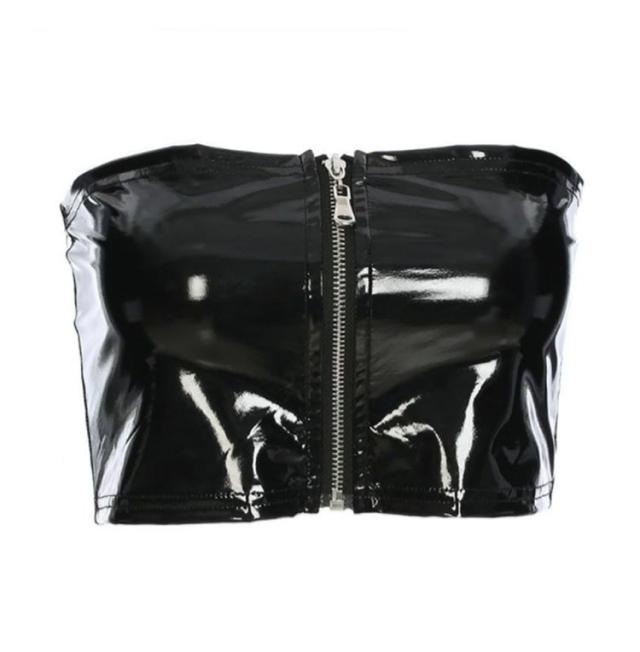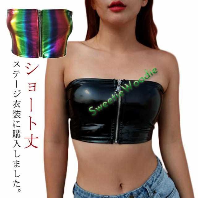 ベアトップ チューブトップ フェイクレザー ショート丈 トップス エナメル トップス ヘソ出しトップス ショート トップス レディース トップス 女性 へそ出し へそだし シンプル おしゃれ かっこいい 黒 ブラック ダンス 衣装 ポールダンス 送料無料
