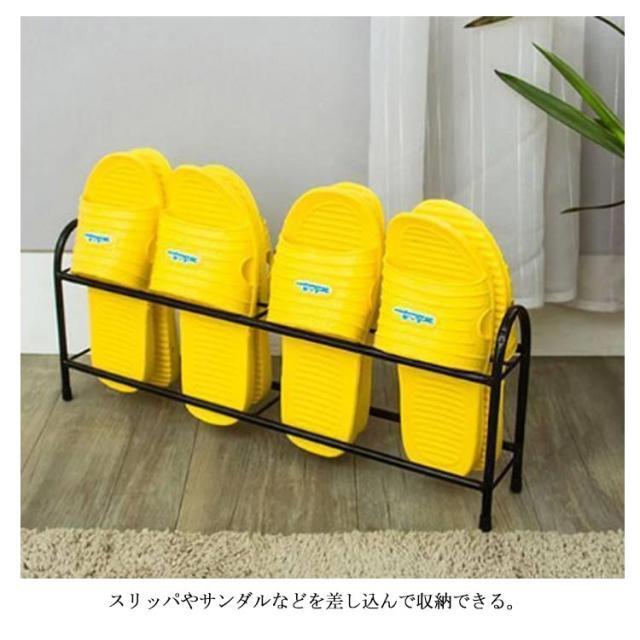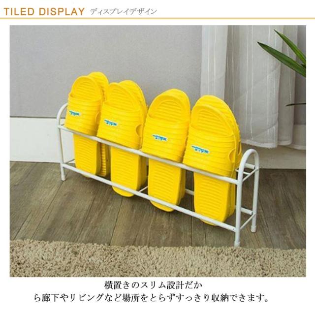 | スリッパの裏面を重ねて4足収納できます。 横置きのスリム設計だから廊下やリビングなど場所をとらずすっきり収納できます。 スチール製で安定感もしっかりで使いやすさと機能性を重視したスリッパラック。 スリッパやサンダルなどを差し込んで収納できる。 | |