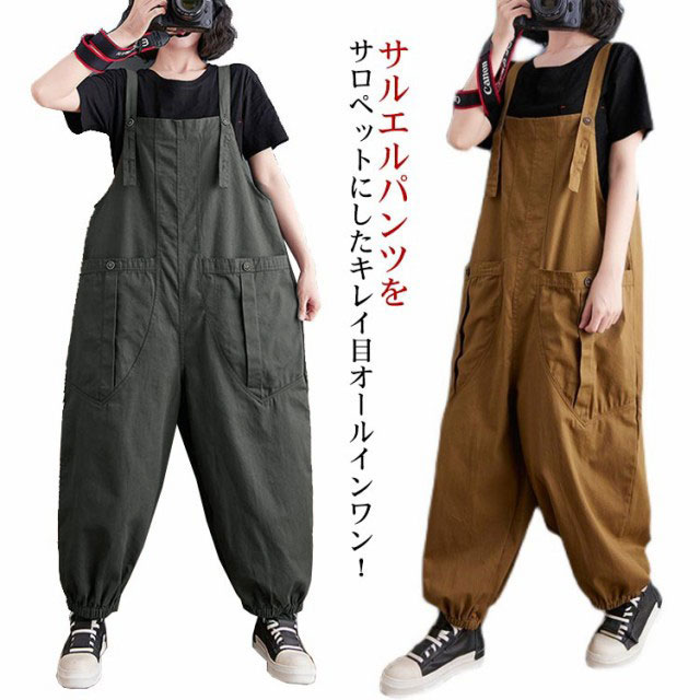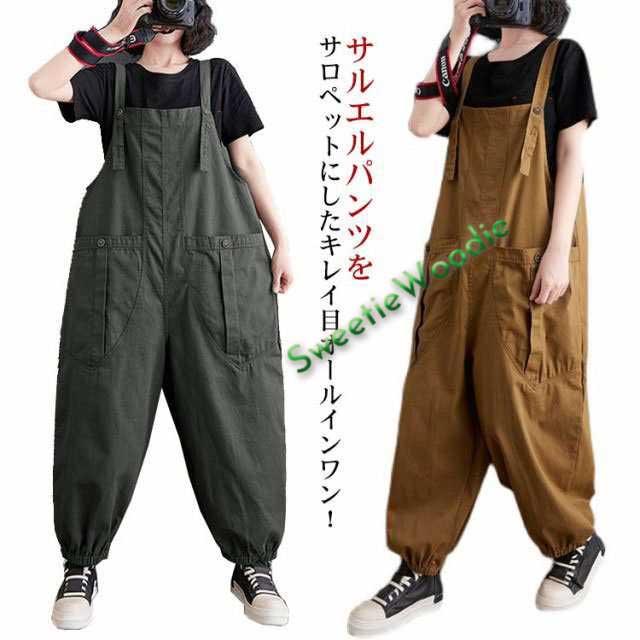 【送料無料】作業ズボン サロペット パンツ オーバーオール レディース サルエルパンツ ゆったり ワークパンツ つなぎ 作業服 カジュアル ワークマン ツイル生地 オールインワン 春 秋 冬 ボトムス オーバーサイズ 大きいサイズ