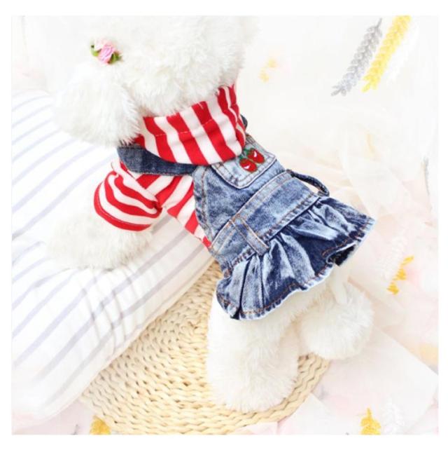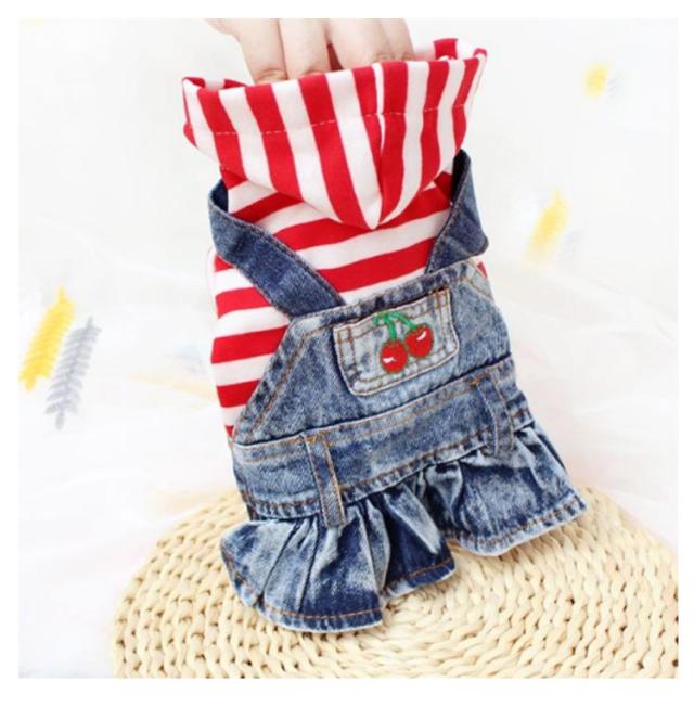 犬服 ドッグウェア 送料無料 ワンピース 春夏秋冬モデル ボーダー柄 デニムスカート デニムカバーオール ダメージ デニム スカート デニムスカート つなぎ オーバーオール デニムつなぎ フード付きボーダーパーカー ダメージジーンズ 抜け毛防止