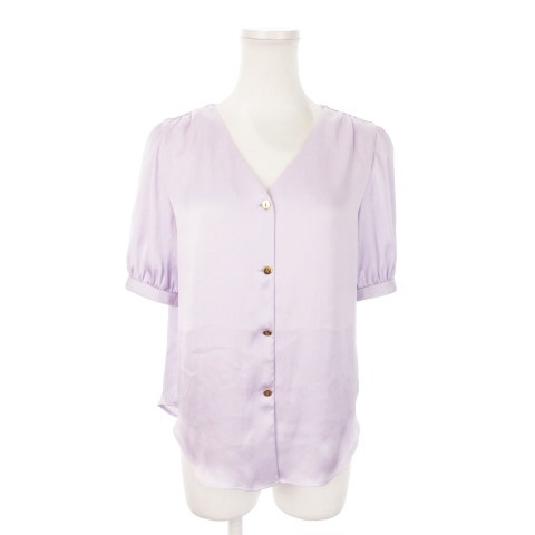 【中古】ユナイテッドアローズ UNITED ARROWS 半袖ブラウス パフスリーブ 金ボタン 光沢感 とろみ感 36 S 紫
