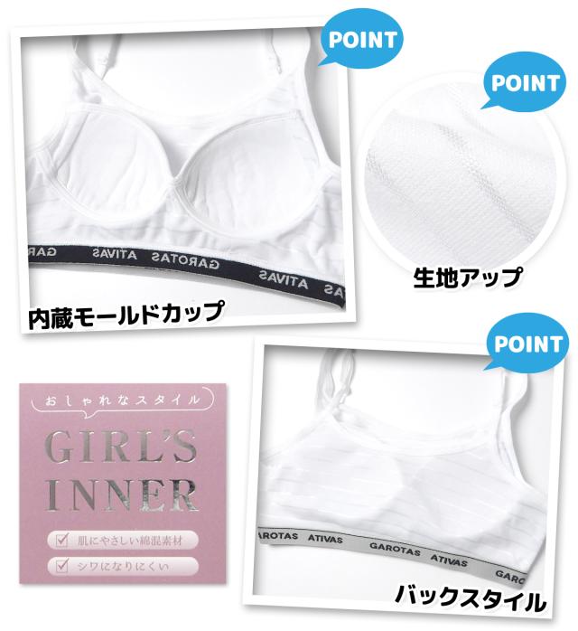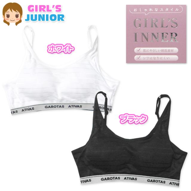 【送料無料】女児 ジュニア 綿混 ハーフブラ 内蔵モールドカップ シースルーボーダー柄 肌にやさしい ストレッチ 下着 子供 女の子 140cm 150cm 160cm 165cm yg-3011【メール便対応】