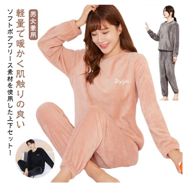 ルームウエア 男女兼用 フリース スウェット ボア 無地 暖かい パジャマ トレーナー 上下セット モコモコ クルーネック ジョガーパンツ 部屋着 メンズ 寝巻き 上下セット ナイトウェア おしゃれ 可愛い 秋冬