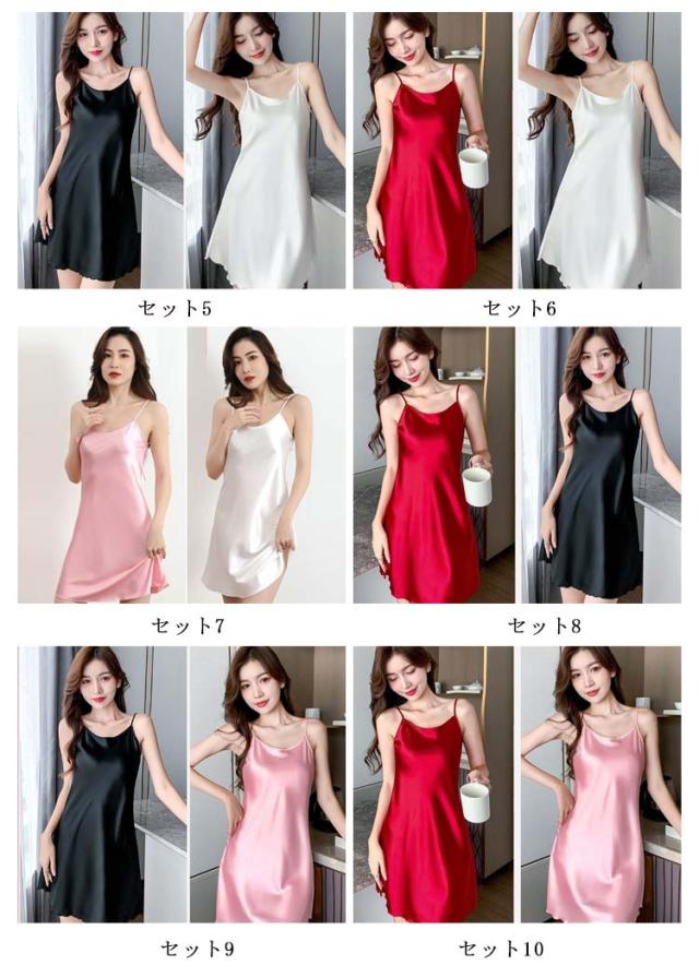 2枚セット ロングキャミ インナーワンピース ペチコート キャミワンピ レディース インナー 大きいサイズ サテンキャミソール キャミワンピース ロング 涼 ルームウェア 肌着 ノースリーブ サテン 大人 かわいい エレガント キャミソール