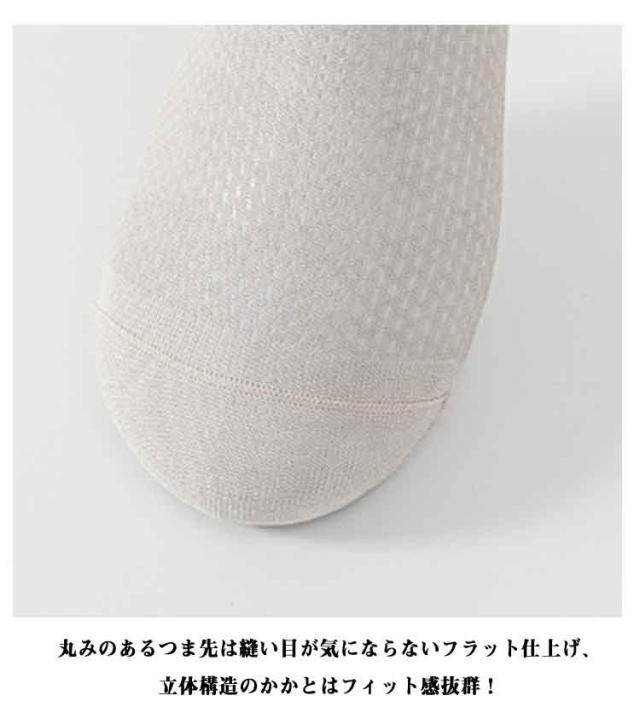 | 冷感涼しい・シルクスニーカーソックス。 触れるとひんやり冷感仕様、肌触りよく快適な着用感。 吸水・速乾性に優れた素材に7aグレードの抗菌・防臭加工が施され、いつもさらっと清潔に。 薄手のメッシュ素材で通気性が高く、冷感素材と相まって蒸れにくく暑い季節にぴったりな爽やかな履き心地。 締め付けない伸縮性抜群の履き口、足に優しくフィットし、脱げにくくストレスフリー。 丸みのあるつま先は縫い目が気にならないフラット仕上げ、立体構造のかかとはフィット感抜群! ソフトで弾力のあるサポーターが偏平足で垂れ下がった縦アーチ(土踏まず)を締め付けて持ち上げ縦アーチを形成して、疲れにくく快適な履き心地を実現します。 嬉しい丈感、ビジネスシューズやスニーカーなど様々な靴と相性抜群で、おしゃれに履きこなせる1足です。 | |