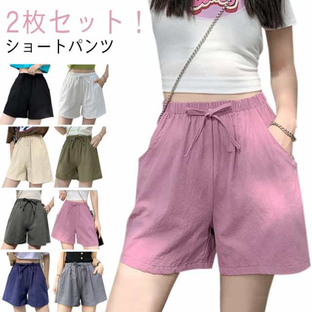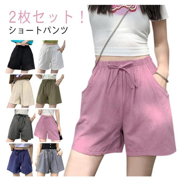 涼しい ポケット付き 可愛い 短パン 綿麻 綿麻 レディース 大きいサイズ 短め ミニパン キュロット おしゃれ 無地 ルームパンツ ウエストゴム 部屋着 春 夏 大きいサイズ 部屋着 スポーツ ヨガ ルームウェア 短め 2枚セット!ショートパンツ