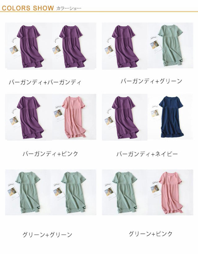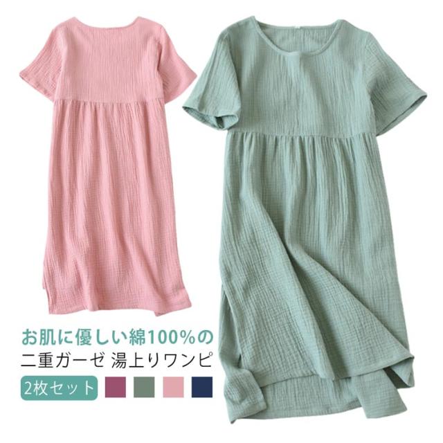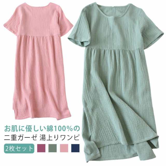 レディース 湯上がり タオルワンピース 【2枚セット】 ワンピース 湯上りワンピ ガーゼワンピース 綿 ルームウェア タオルワンピ ルームワンピース 綿100 着るタオル 100% 半袖 夏用 夏 室内着 ホームウエア 部屋着 ネグリジェ ガーゼ 無地 吸湿 速乾 通気性 コットン