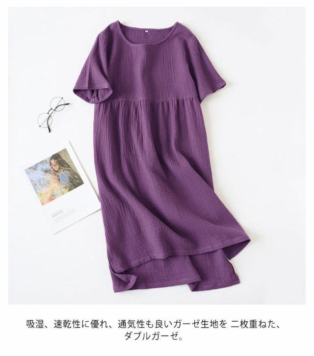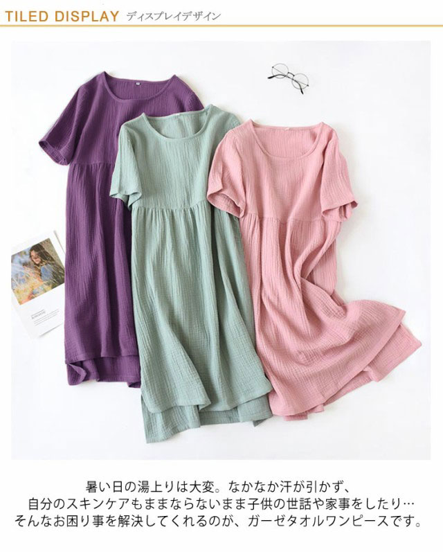 レディース 湯上がり タオルワンピース ワンピース 湯上りワンピ ガーゼワンピース 綿 ルームウェア タオルワンピ ルームワンピース 綿100 着るタオル 100% 半袖 夏用 夏 室内着 ホームウエア 部屋着 ネグリジェ ガーゼ 無地 吸湿 速乾 通気性 コットン