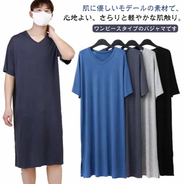 女性 夏 Vネック パジャマ 男女兼用 スリーパー パジャマ 春 ワンピース レディース メンズ モダール 肌に優しい ネグリジェ パジャマ パジャマ 部屋着 寝間着 薄手 半袖 ルームウェア 夏 ゆったり 大きいサイズ 柔らかい 通気性 寝巻き プレゼント 父の日 母の日