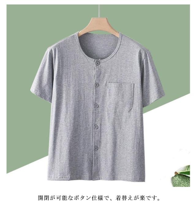 レディース クールネック 前開き 綿 肌着 快適 介護用 介護用 メンズ インナーシャツ 無地 半袖 ルームウェア 下着 ポケット 介護 入院 手術 吸汗速乾 部屋着 男性用 女性用 半袖Tシャツ 男女兼用 パジャマ