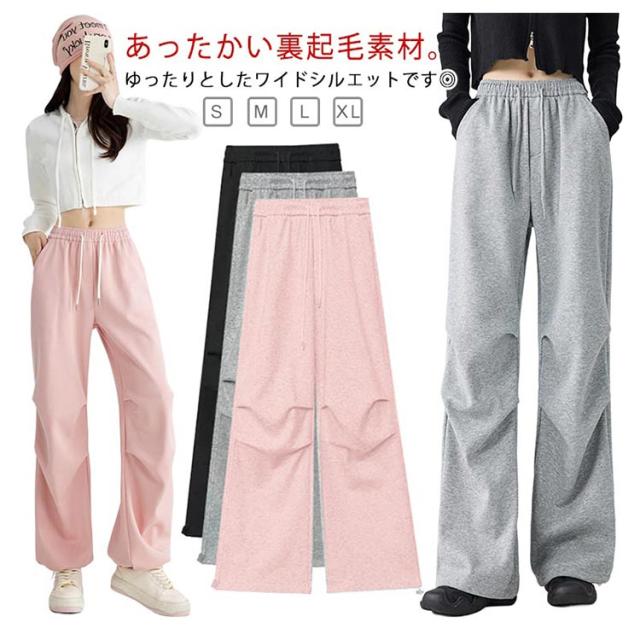 ワイドパンツ 春秋冬 スウェットパンツ ワイドパンツ ゆったり 裏起毛 ロングパンツ スポーツウェア ウエストゴム カジュアル パンツ レディース 大きいサイズ 防寒 部屋着 運動着 着痩せ 通勤