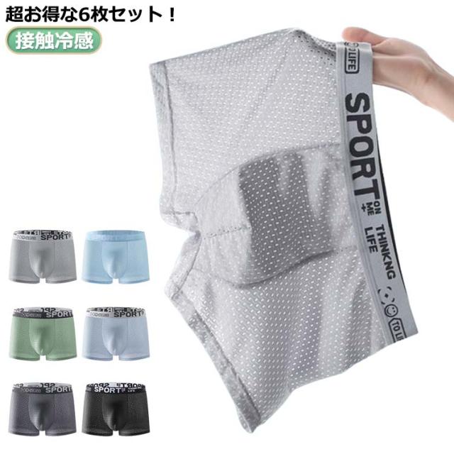 男性 接触冷感 ボクサーパンツ 伸縮性 薄め メンズ 前閉じ 薄型 パンツ 速乾 ストレッチ 快適 通気性 メッシュ アンダーウェア 涼しい セット ストレスフリー 吸汗 下着 無地 夏 蒸れない 6枚セット