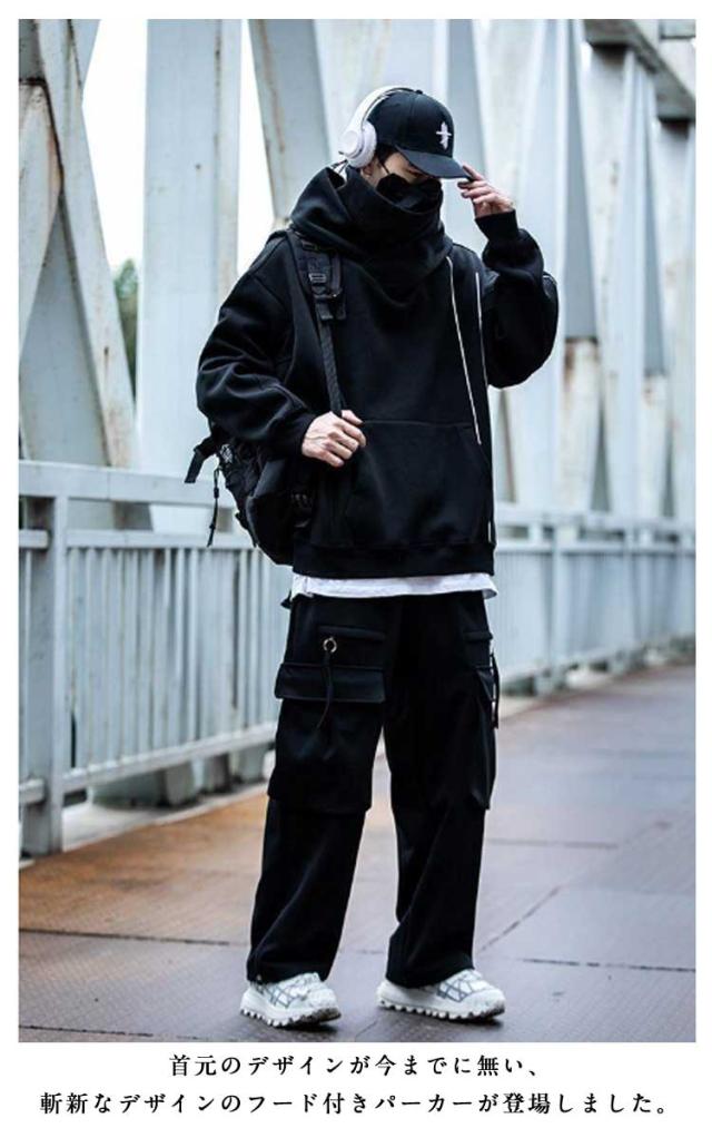 ハイネック 大きいサイズ メンズ 長袖パーカー パーカー プルオーバーパーカー ハイネック フード付き フーディー ゆったり ボリュームネック カジュアル ストリート系 無地 長袖 春服