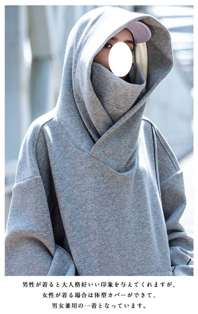 | このフード付きスパーカーを着て街を歩けば、とても安心感があります! 大きなフードと二重のハイネックで顔を隠せるので、街中でも誰にも気づかれません 首元のデザインが今までに無い、斬新なデザインのフード付きパーカーが登場しました。 一見すればマスクやスカーフのようなデザインが首元に施されており、ストリート感タップリ生地はさらさらとした生地感で長い期間着用できてコーデの幅も広がります。 これ1枚でもインナーとしてもしっかり存在感を表現してくれますよ。 ややゆったりめのストレスレスに着て頂けるボリュームネックパーカー。 大きめのフードとハイネック仕立てでボリュームを持たせ、さり気ないアクセントに。一枚でも着て頂けるので、お車での移動や、近くまでお出かけする際にもオススメです。 首元はハイネックトなって、袖口と裾はリブ仕様で、寒い日の保温に良く、男性の格好いいスタイリングを実現できるフード付きパーカーです。 男性が着ると大人格好いい印象を与えてくれますが、女性が着る場合は体型カバーができて、男女兼用の一着となっています。 | |