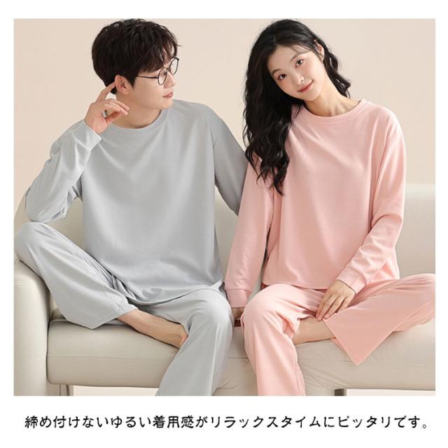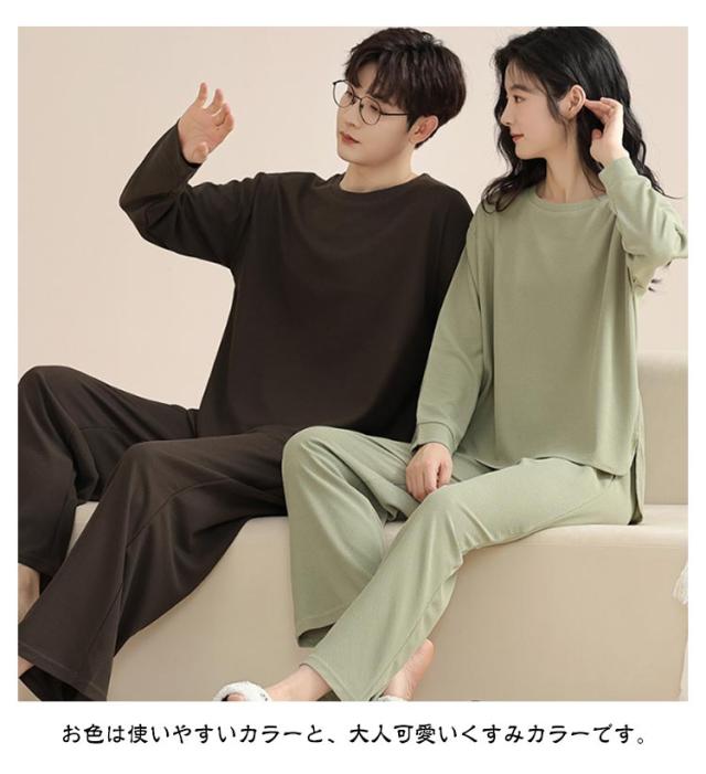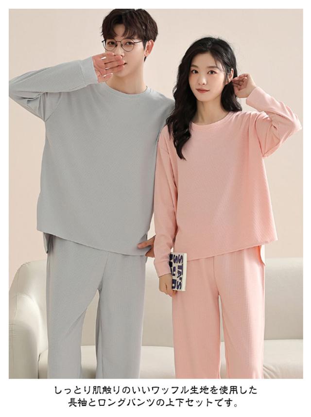 ナイトウェア 上下セット セットアップ レディース カップル 綿 ルームウエア 寝間着 ペア 寝巻き ワッフル生地 男性 パジャマ 無地 大人 ナイトウエア リラックスウェア 長袖 部屋着 女性 可愛い かわいい 秋 コットン 男女兼用 女性 メンズ
