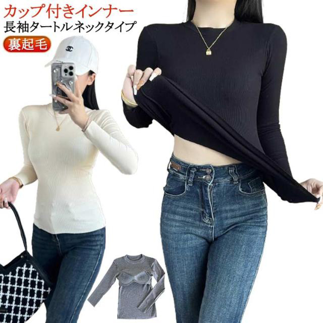 レディース 裏起毛 長袖 ブラトップ インナー タートルネック 速乾 暖か ノンワイヤー 無地 ハイネック ルームウェア 部屋着 Tシャツ ストレッチ S M 大きいサイズ 下着 トップス カップ付き 肌着 ナイトウェア ジムウェア 冷え対策 保温 秋 冬