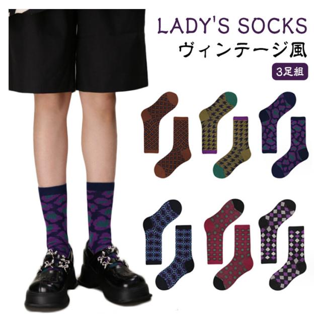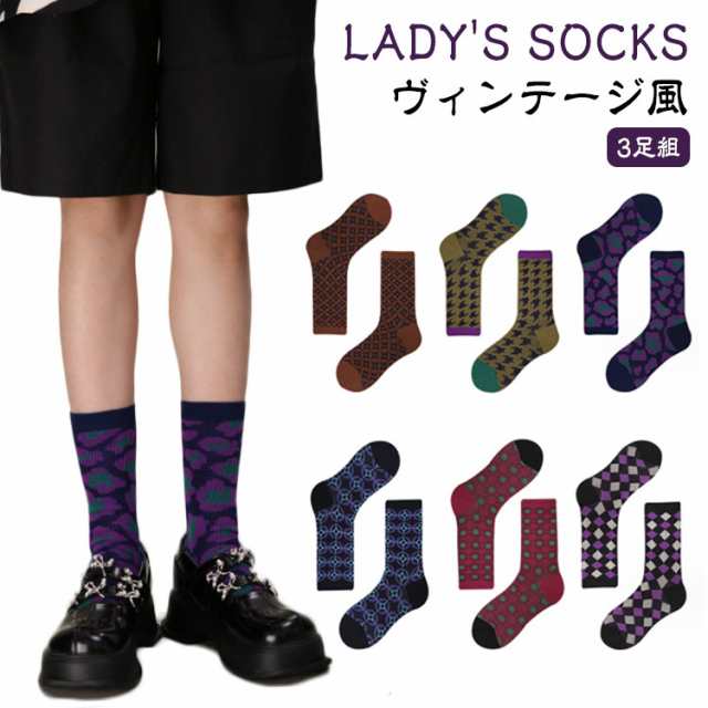 ミドル丈 スニーカーソックス おしゃれ 秋色 靴下 チェック柄 レディース靴下 千鳥柄 ヴィンテージ風 靴下 北欧 クルーソックス チェック ソックス ソックス クルー丈 レディース くつした 靴下 靴下 レトロ 靴下 ソックス 夏用 靴下 ソックス 秋用 女性用 3足セット