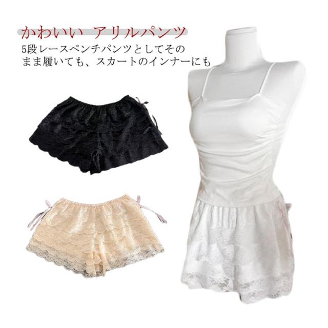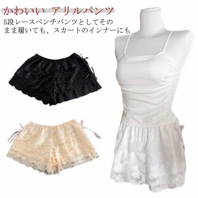 | かわいい アリルパンツ 5段レースペンチパンツとしてそのまま履いても、スカートのインナーにも 部屋着にしてもかわいい♪おうちでリラックス ハードなダンスやコスやレ衣装にもバッチリ! サラッとした肌触り | |