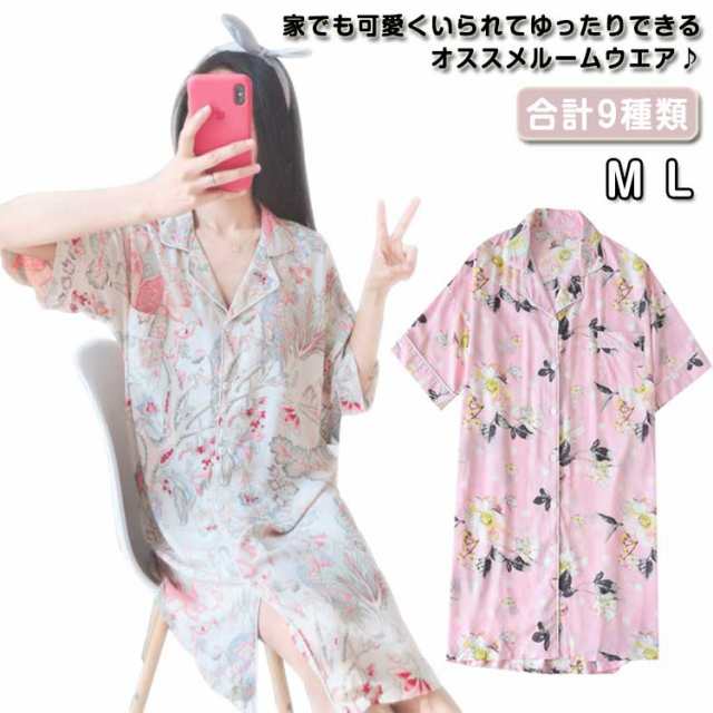 ネグリジェ ロング丈 レディース ルームウエア パジャマ 半袖ワンピース 春夏 パジャマ 涼しい 襟付き 花柄 部屋着 大人可愛い 寝巻き