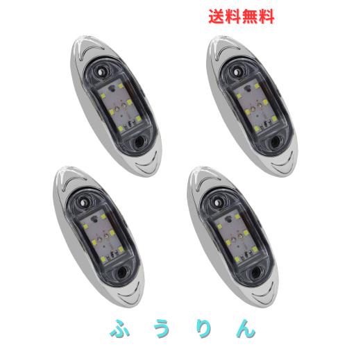 Aoling サイドマーカー LED 12V 24V ホワイト トラック用 マーカーランプ 路肩灯 軽トラ 6LED クリアレンズ 電気メッキ本体 防水防塵 高