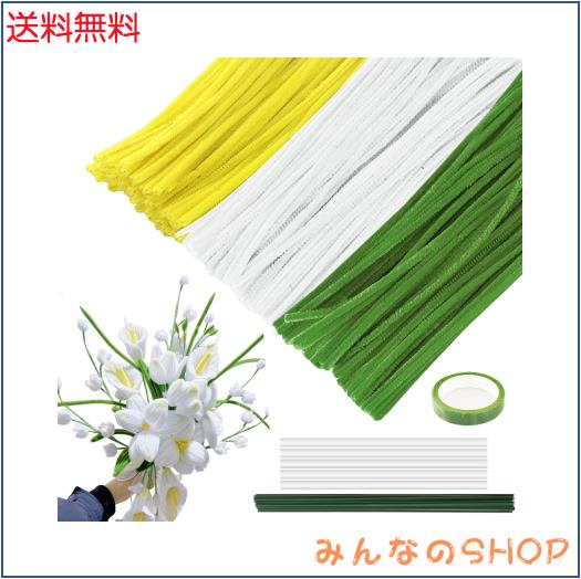【商品仕様】セット内容:白色*約100本+黄色*約100本+緑色*約100本、人工花茎*20本、フラワーテープ*1個、ホットメルトスティック*5本。サイズ:手芸モール約30*0.6 cm、花茎の長さ約30cm、商品セットには簡単な手順の説明書を付属します