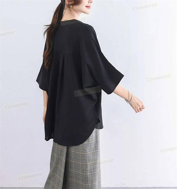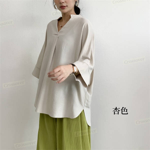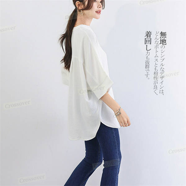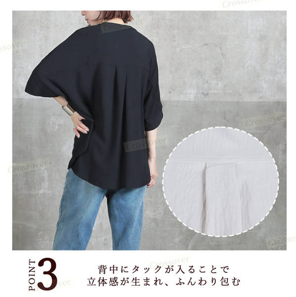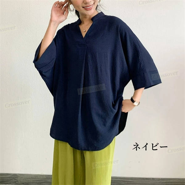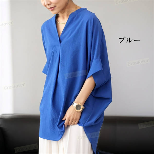 【二点目1,000円OFF】シャツ シャツブラウス ドルマン スキッパー チュニック 着痩せ ゆったり 大人 抜け感 夏 レディース 無地 七分袖 Vネック タック入り 体型カバー 大きいサイズ 半袖シャツ ブラウス チュニック 半袖