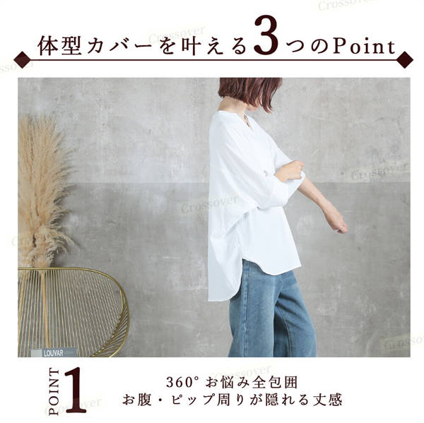 - 白なので多少透けますが、インナーを工夫すれば問題ないと思います。体型も選びません。仕事でもプライベートでも活躍しそうです。