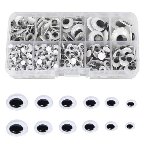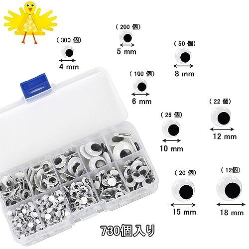 目玉シール 人形アイ 動物 人形 アイ 白黒目シール 目パーツ 動く目玉DIY 手作りおもちゃ ドールメイキング 材料 自分粘着 4mm/5mm/6mm/8mm/10mm/12mm/15mm/18mm 収納ケース付き( 約730個入り)
