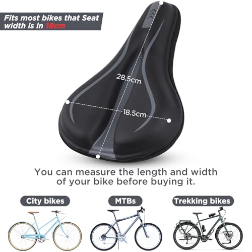 適応サドルサイズ:商品サイズ:縦28cm×幅18cm。適用サドルの長さ:25-27cm,適用サドルの幅:14-16cm。マウンテンバイク、ロードバイク、クロスバイクなどのスポーツ自転車用の細身のサドルに適用しています。※ サドルのサイズを確認してからご購入することをおすすめします。