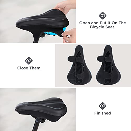自転車 サドルカバー 超肉厚 お尻痛くない サドルクッション PU表地 防水 ジェル内蔵 衝撃吸収 テープクロス式 取付簡単 ロードバイク マウンテンバイク クロスバイク用