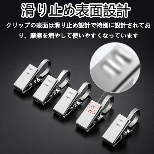 カーテンクリップ ステンレス製 歯付きカーテンクリップ 強力 滑り止め カーテンクリップフック 簡単取り付け 防錆耐久 カーテン シーツ テーブルクロス固定に最適 家庭 オフィス ホテル用 20個セット