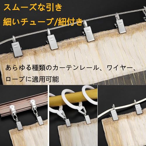 【挟み込み力が強い】クリップの開口部に鋸歯の設計を採用し、挟み込み力を増加させ、さまざまな厚さのカーテン生地をしっかり固定することができ、重厚なカーテンでも滑りにくい。