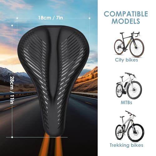 適応サドルサイズ:商品サイズ:縦28cm×幅18cm。適用サドルの長さ:25-27cm,適用サドルの幅:14-16cm。マウンテンバイク、ロードバイク、クロスバイクなどのスポーツ自転車用の細身のサドルに適用しています。※ サドルのサイズを確認してからご購入することをおすすめします。