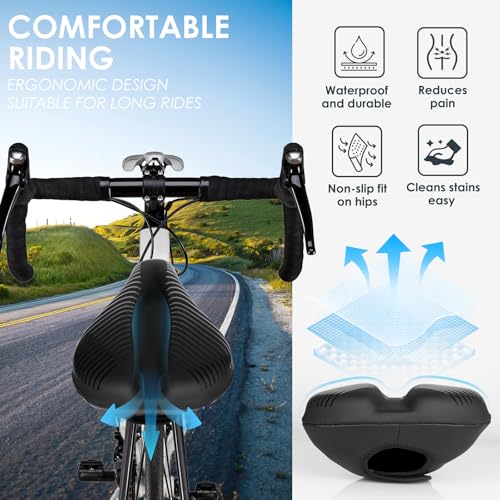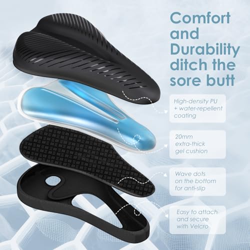 衝撃吸収:高弾力シリコンゲルと超肉厚な低反発ウレタンフォームの二重構造でお尻の負担をを軽減します。サドルの硬さを和らげ、地面からの衝撃も吸収してくれて、長時間乗ってもお尻が痛くならないです。