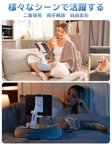 新感覚!『全新デザインのふわふわ快適抱き枕スタンド・ひざ上スタンド・様々なシーンで活躍!』市販上のタブレットスタンドの使用環境限られたという問題を困られたお客様が多い、この問題点を解決するために、弊社のプロ開発チームが抱き枕スタンドは開発しました!抱き枕スタンドは業界初の新月型デザインを採用し、人間工学に基づいて設計された抱き枕スタンドです。腰にしっかりとフィットし、長時間の使用でも疲れにくく、どんなシーンでも快適な使用感を提供します。なお、膝の上でタブレットをリラックスしながら操作できる「ひざ上スタンド」です。デスクが使用できない場面でも本製品を使うことで、快適に作業ができます。そして、クッション部分はぬいぐるみのような柔らかい素材でできており、金属やプラスチックなどの硬いベースと比べて、リラックス効果をもたらします。ソファやベッドなどでの使用に最適です。使わない時、そのままどこで置きても倒れません。お花見、出張、旅行などに出かける時、カバンとスーツケースに入れて持ち運びやすいです。