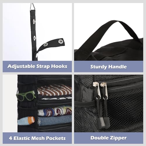 実用的なデザインのアップグレード: 調整可能な長さのフック(金属のバックルを通じた高さの調整可能)は、さまざまな長さの要件に適しています。透明なメッシュデザインにより、収納されたアイテムに簡単かつ便利にアクセスできます。金属製のダブルジッパーは、スムーズに開閉します。