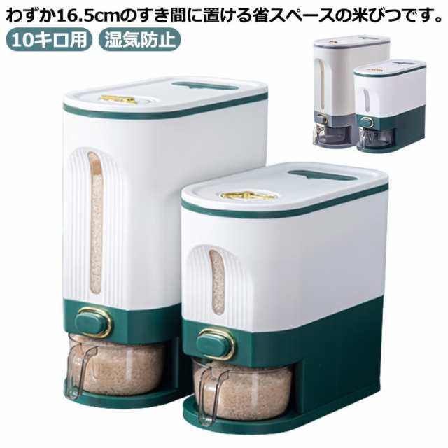 | わずか16.5cmのすき間に置ける省スペースの米びつです。 しっかり密閉でき、お米の鮮度を長期間キープできます。 オールプラスチックなので錆びません。 10kgの容量は、大家族や多人数での食事に最適で、家庭での調理に欠かせないアイテムです。 | |
