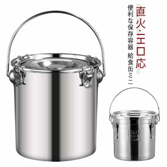 | 便利な保存容器 給食缶ミニ 直火?IH?応 余った料理の保存や作り置き、アウトドアにも便利! 冷蔵保存、持ち運び、温めまで「給食缶ミニ」これひとつでOK! 蓋のシリコンゴムパッキンと3つの留め具でしっかり密閉! パッキンは取り外し可能! ニオイも漏れにくいから冷蔵庫にニオイが漏れず快適です。 | |