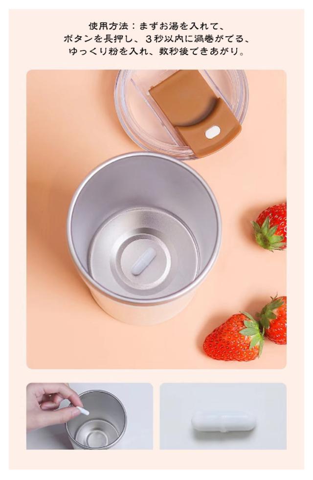 | 自動攪拌マグカップ420ml 高級304ステンレス鋼素材、腐食しない、安全安心。 ワンタッチで製品起動、3秒以内お湯が渦巻きになり、粉を入れてすぐに溶けられる。とても便利。 防水防漏洩設計、蓋も付き、保温保冷もできる。 コーヒー、大豆、ミロ、酵素、青汁など、いろんな種類のものを混ぜることできる。強力なパワーで均等混ぜができる。 使用方法:まずお湯を入れて、ボタンを長押し、3秒以内に渦巻がでる、ゆっくり粉を入れ、数秒後できあがり。 職場や在宅勤務など、コーヒーや青汁飲む場面、すぐに使える非常に便利なカップ。 | |